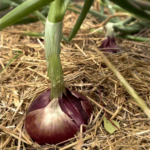 - Signs: Harvest when tops yellow and fall over.