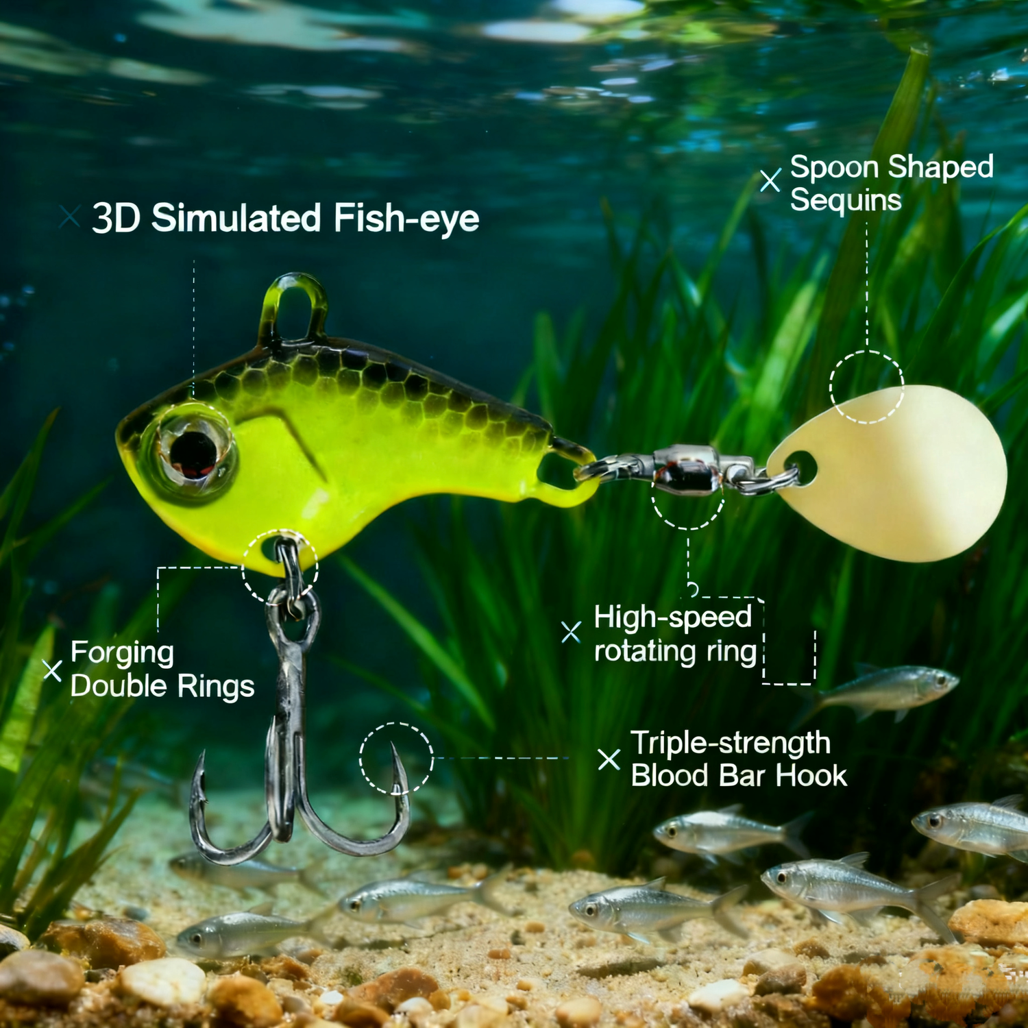 - Fret no more! Made with top - tier materials and a tough tail - spinning structure, our bait — paired with triple - reinforced blood groove treble hooks and a high - speed swivel — easily tackles fish up to 17.6 lbs.